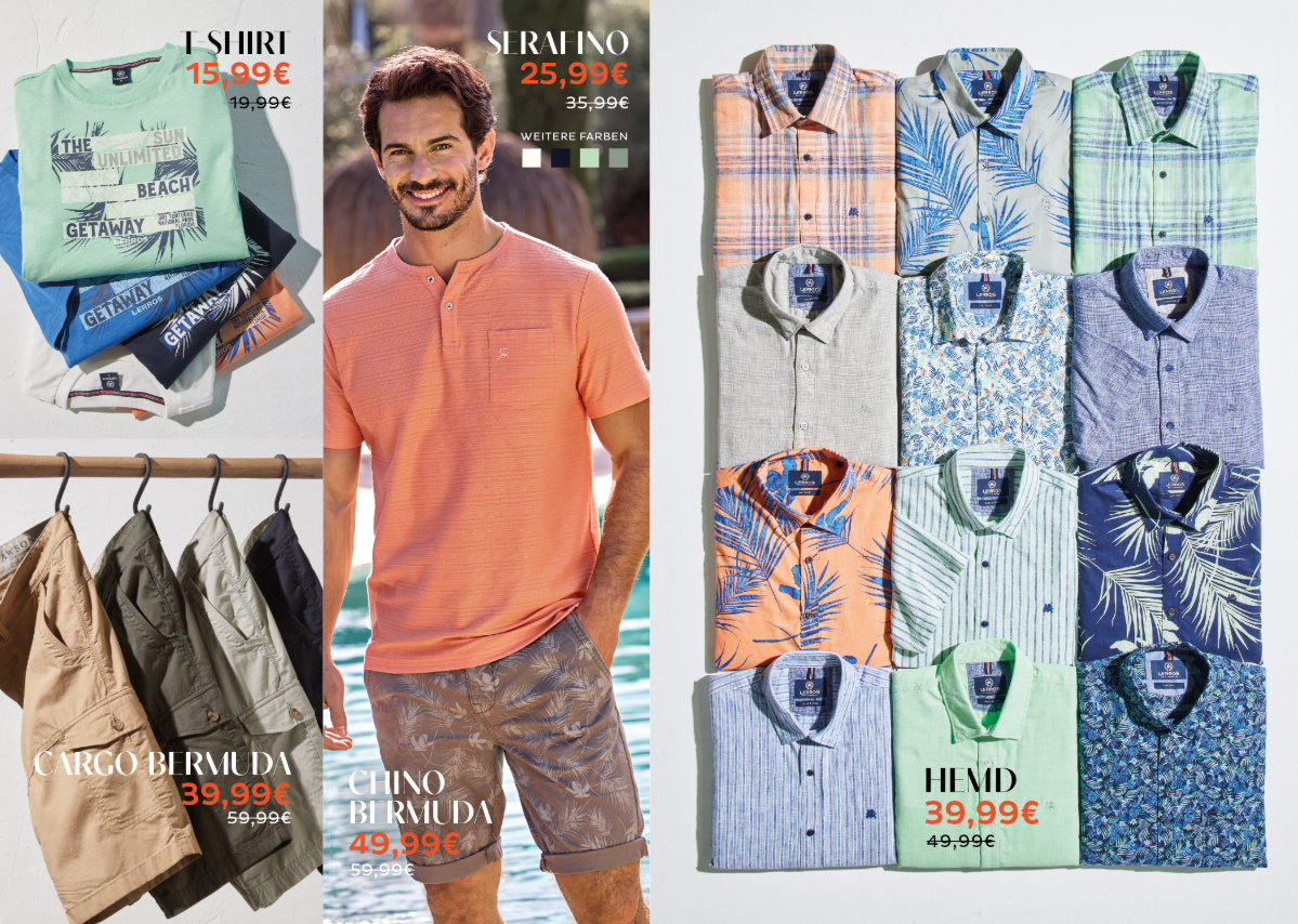 Entdecke atemberaubende Sommer–Outfits von LERROS, JACK & JONES, QS, CALAMAR, ETERNA, THE SURFCAR, MODE MONTE CARLO und S.OLIVER - jetzt zu unschlagbaren Preisen!